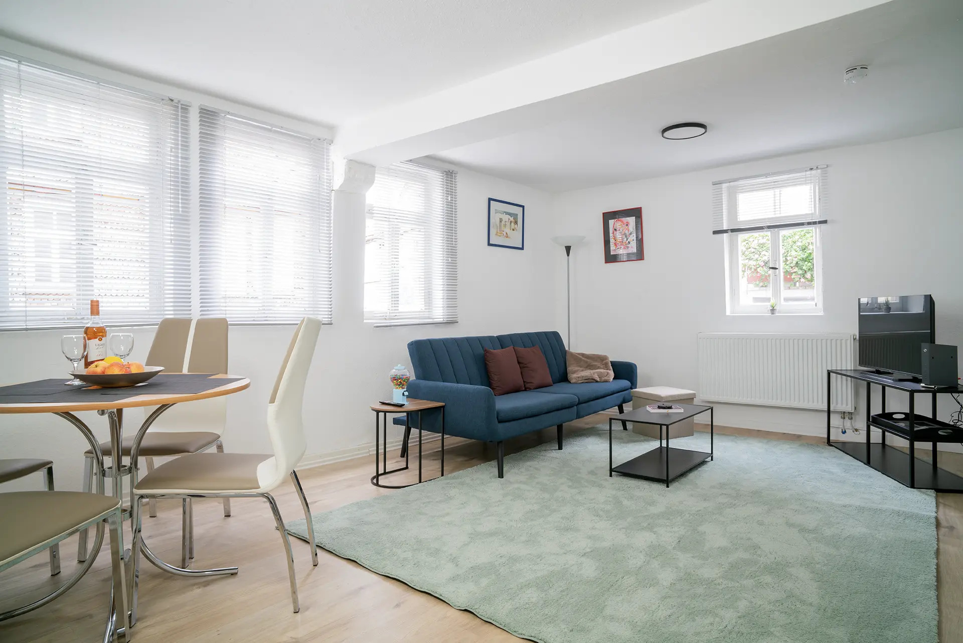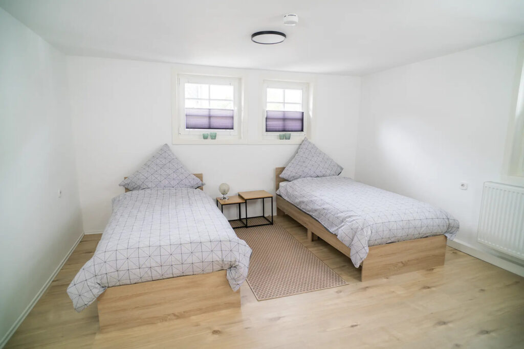 In Kirchhain, im grünen Mittelhessen, lädt das Quartier Marktplatz Sie zum Verweilen ein. Zwei moderne Apartments bieten hier je vier bzw. fünf Gästen ausreichend Platz zu entspannen. Die in direkter Nähe zu Marburg an der Lahn liegenden hellen Ferienapartments sind mit Küchenzeilen ausgestattet, so wie eigenen Badezimmern mit Badewanne – perfekt, um es sich richtig gut gehen zu lassen. Zentral in Kirchhain gelegen, sind fußläufig verschiedene Restaurants, Einkaufsmöglichkeiten und eine Apotheke erreichbar. In Marburg ist man in 15 Autominuten.