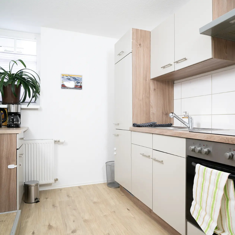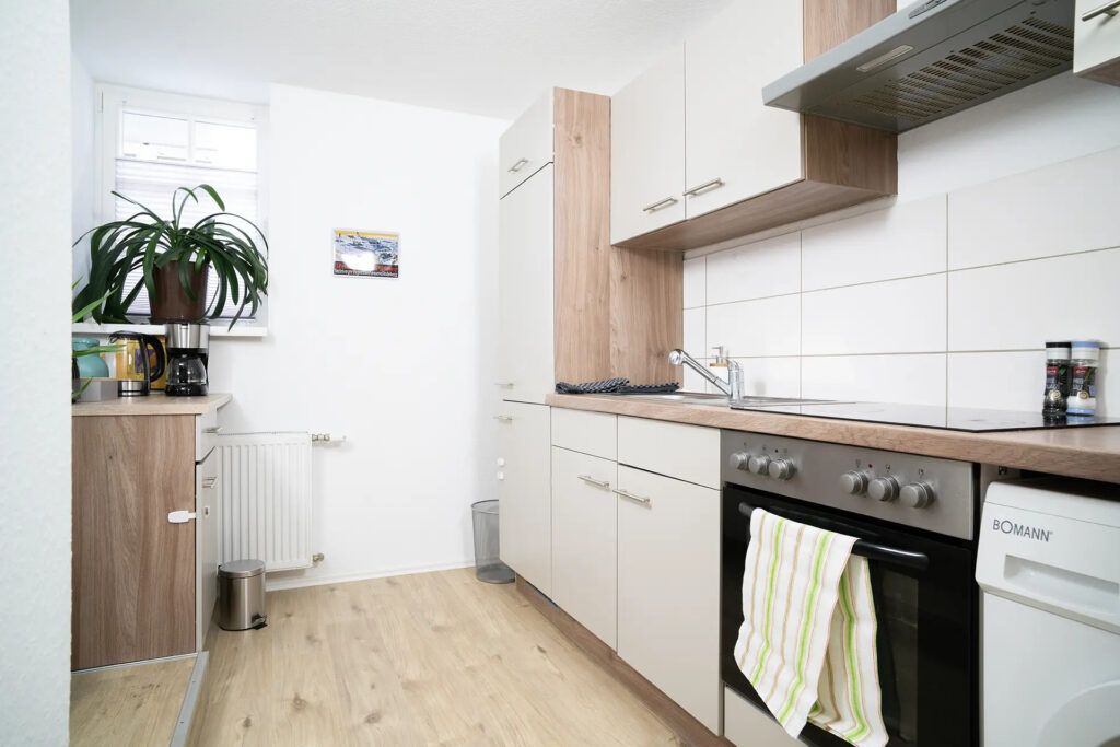 In der Küche finden Sie mit Esstisch, Kaffeemaschine, Toaster, Herdplatte, Backofen, Wasserkocher, Kühlschrank, Küchenutensilien und Reinigungsmittel alles, was Sie brauchen. Sie wollen nach Ihrer Ankunft erst einmal in Ruhe eine Tasse Kaffee oder Tee genießen? Kaffee- und Teezubehör finden Sie ebenfalls im Quartier Marktplatz. Auch für kuschelige Bettwäsche ist gesorgt. Im Badezimmer stehen Handtücher, Toilettenpapier, Haartrockner und kostenlose Pflegeprodukte für Sie bereit.